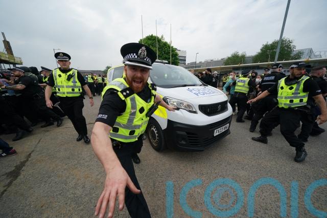 There were scuffles between the campaigners and police outside the Thales factory on Linthouse Road, Govan, Glasgow, where the protest began early on Wednesday morning.