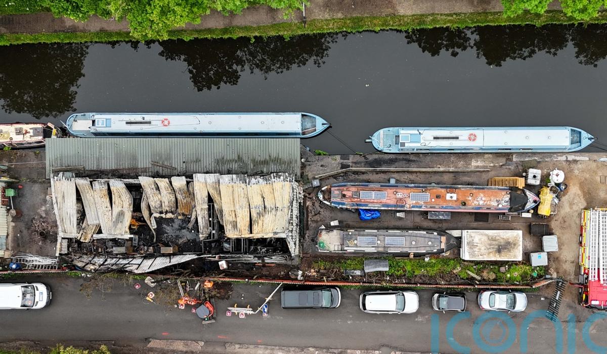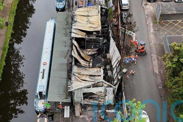 No one was hurt in a fire which engulfed a canal-side, boatyard workshop, West Midlands Fire Service has confirmed.