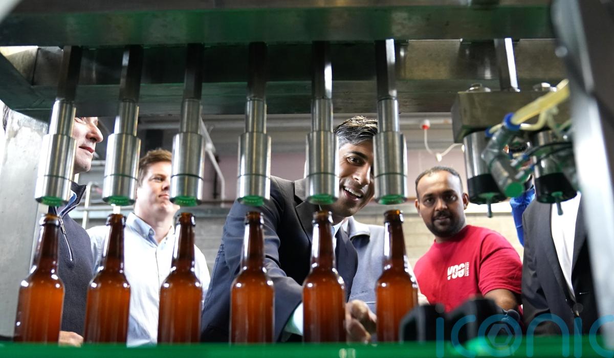 Teetotaller Mr Sunak watched beer being bottled at the Vale of Glamorgan Brewery, in Barry, south Wales.
