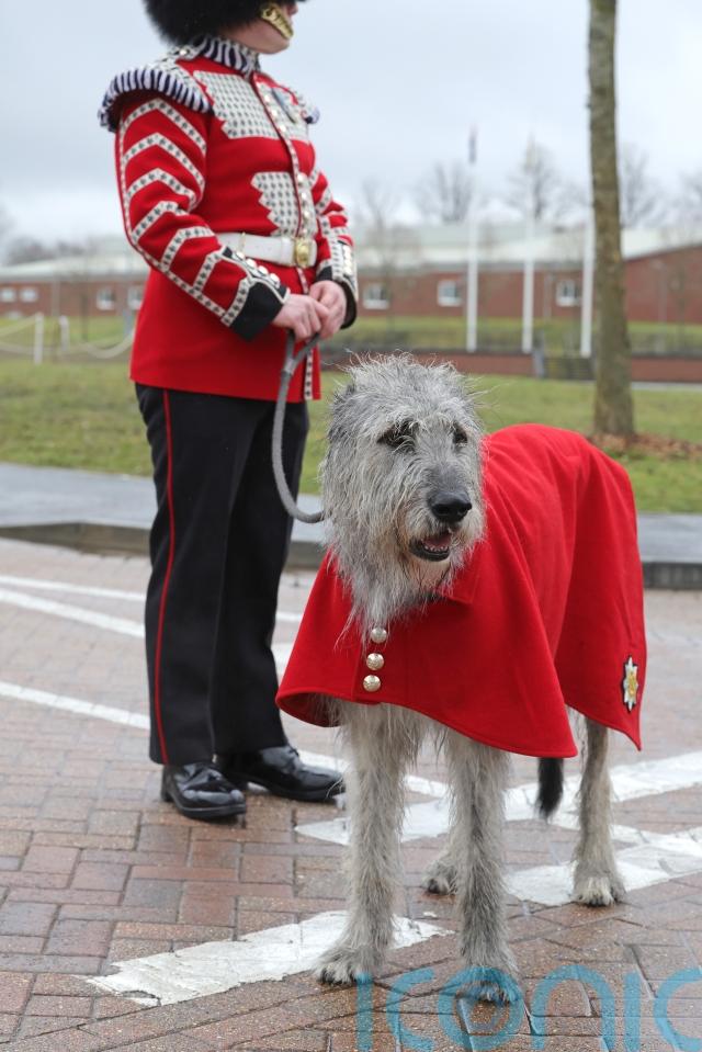 They will be led by the Irish Guards’ regimental mascot – an Irish wolfhound named Turlough Mor.