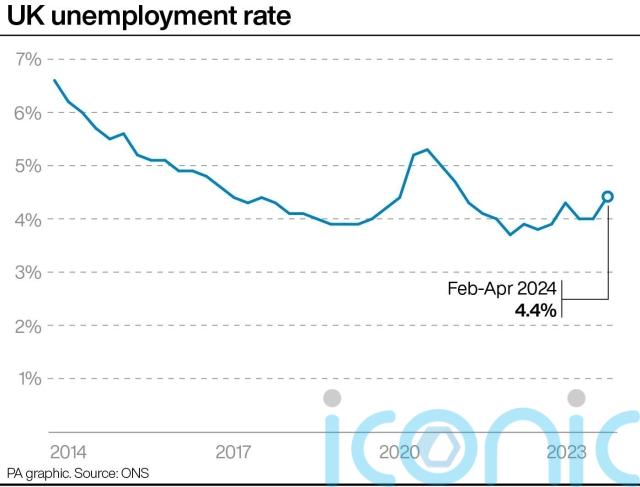 The Office for National Statistics (ONS) said the rate of UK unemployment lifted to 4.4% in the three months to April, up from 4.3% in the three months to March.