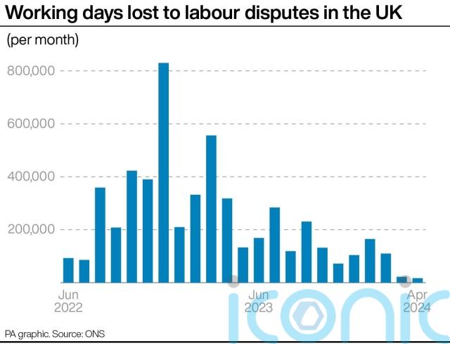 There were an estimated 17,000 working days lost to strike action across the UK in April, the ONS added.