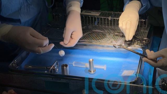 “Made out of medical grade rounded solid silicone, the implant measures around 25mm – smaller than a ping pong ball – and is fitted via robotic-assisted laparoscopic (keyhole) surgery as a day case, with patients in theatre for less than two hours.”