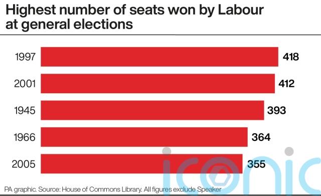 Labour’s largest majority to date is 178, in 1997 – the election that saw Tony Blair become prime minister.