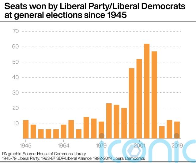 Since 1945, the party’s best performance at a general election – either as the Liberals or as the Liberal Democrats – came in 2005, when it secured 62 MPs.