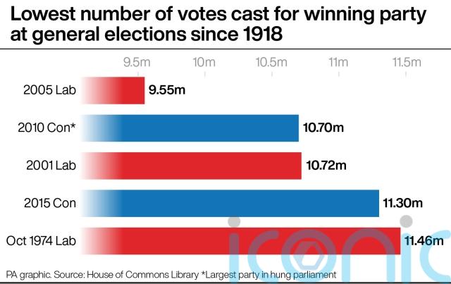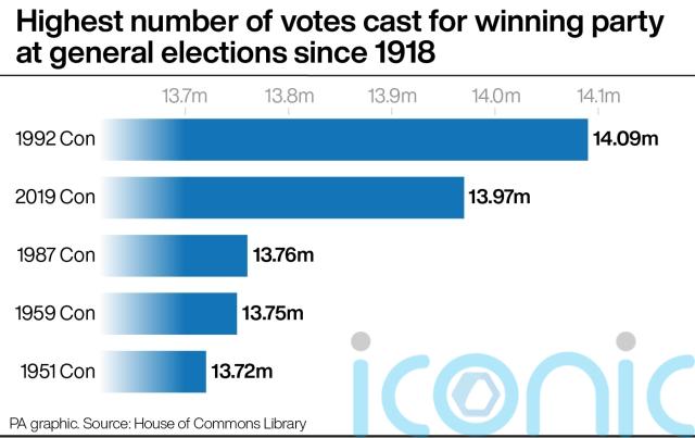 This is just ahead of the 13.97 million votes for the Conservatives when they won the 2019 election.