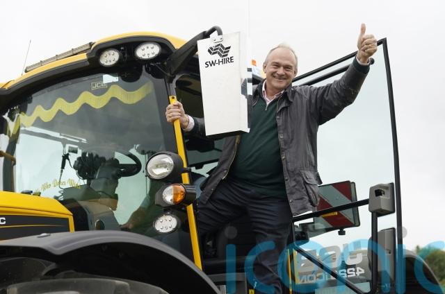 Sir Ed took to the wheel of a large yellow tractor, doing circuits of a field in Wiltshire to illustrate how his party was targeting the “blue wall” of safe Tory seats.