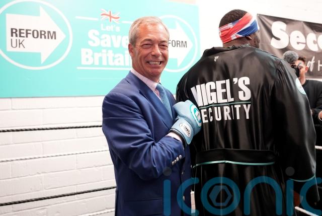 Nigel Farage donned a pair of boxing gloves as he sparred with former British heavyweight champ Derek Chisora during a final campaign visit to a gym in his Clacton constituency.