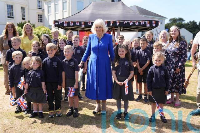 Camilla, who will celebrate her 77th birthday on Wednesday, was given a birthday card made by pupils from the primary school.