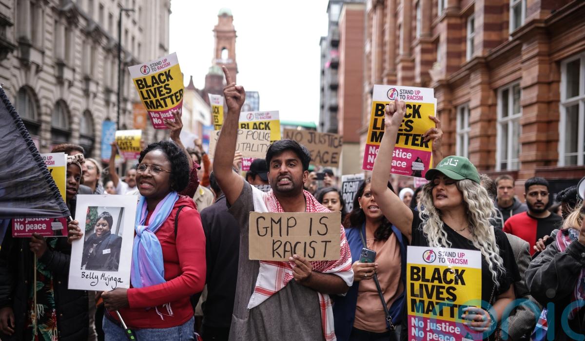 On Thursday evening, a few hundred protesters gathered outside the office of Greater Manchester Mayor Andy Burnham as part of a Stand Up To Racism demonstration, chanting slogans such as “No justice, no peace, no racist police”.