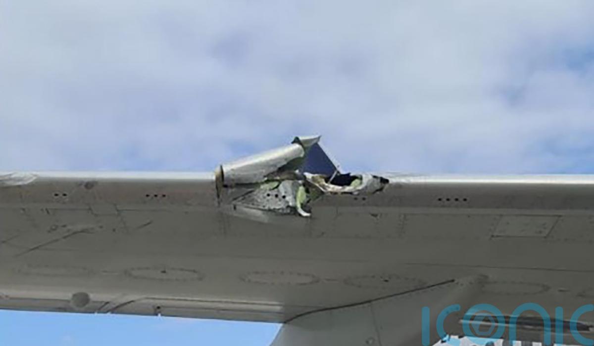 The plane’s right wing collided with the roof of the vehicle, causing visible damage to both.