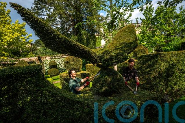 Gardeners at the oldest topiary garden in the world have begun a mammoth six-month trim of more than 100 living sculptures in the centuries-old grounds.