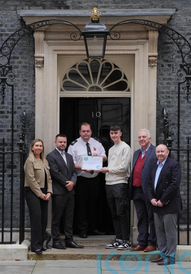 Now aged 20, the North Kilworth FC player attended No 10 on Wednesday to hand in a letter signed by MPs and charities asking the Government to get VAT on defibrillators scrapped.