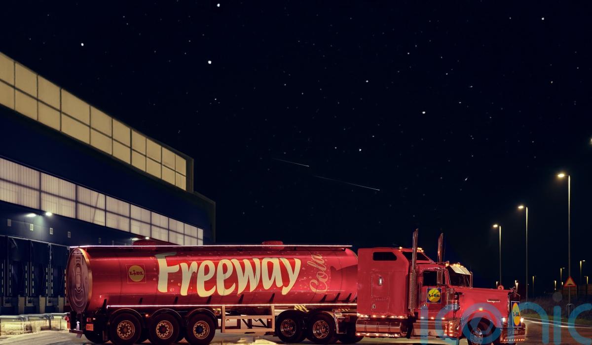 The 20-metre, 15-tonne red truck which will have Lidl’s own-brand Freeway cola label wrapped around its body.