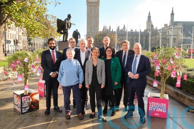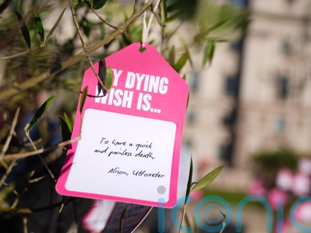 Hundreds of “dying wishes” written by people across the country were attached to trees in Parliament Square as part of the campaign by Dignity in Dying.