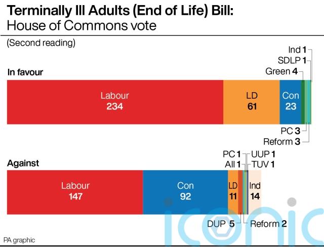 Here is how the vote on the second reading of the Terminally Ill Adults (End of Life) Bill breaks down, including by gender, geography and House of Commons experience.