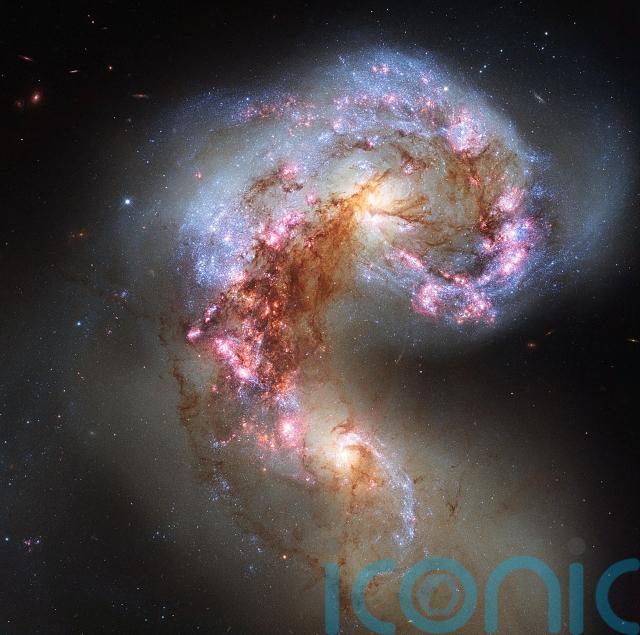 She said: “Two disc galaxies smashing together caused gas, the fuel from which stars are formed, to sink towards their centre, generating trillions of new stars.