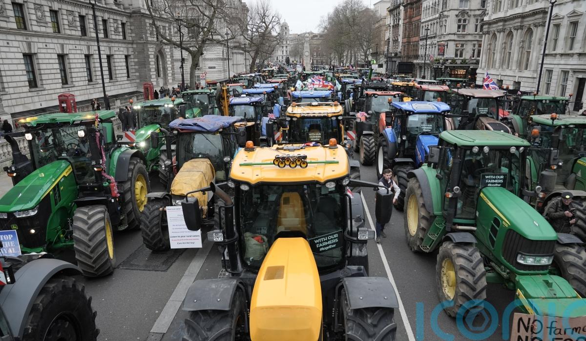 Farmers lined Whitehall and Parliament Square in their tractors on Wednesday, during Prime Minister’s Questions, with some using their vehicle horns to play a series of melodies including Baby Shark and Old MacDonald Had A Farm.