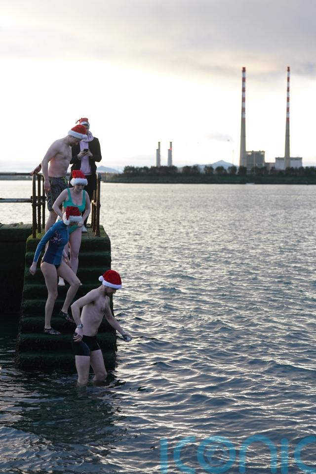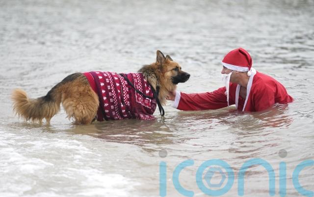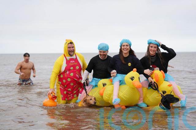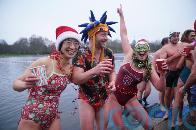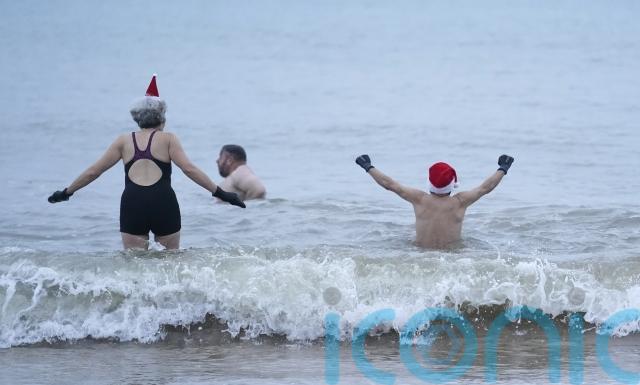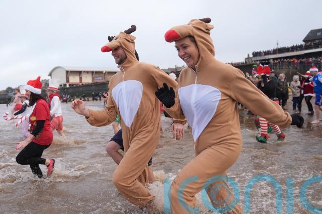 Hardy swimmers, including many in fancy dress, started Christmas Day around the UK and Ireland with an outdoor swim.