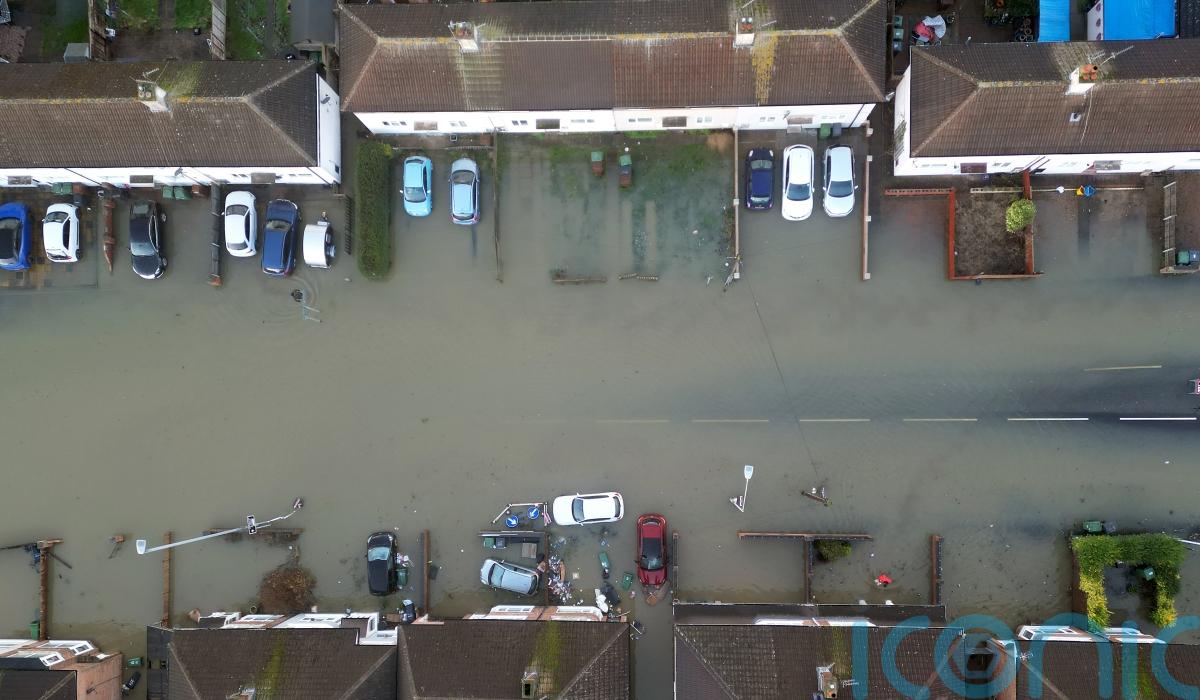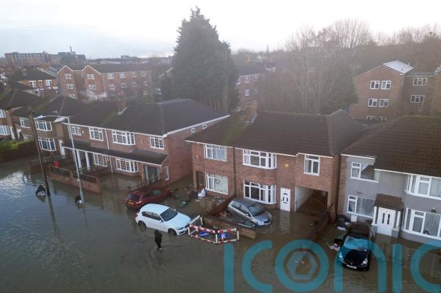 Homeowners on Belton Road in Loughborough remain stranded on the first floor of their semi-detached houses on Tuesday after rising water from the nearby Grand Union canal flooded the street.