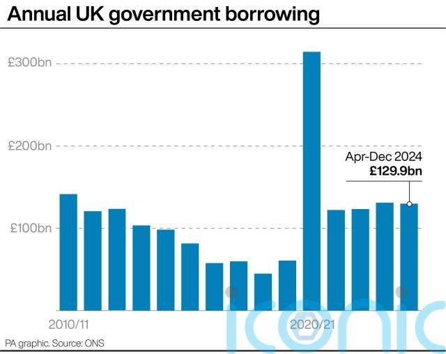 Borrowing in the financial year so far is £129.9 billion, £8.9 billion more than the same period a year earlier and a record outside of the mammoth borrowing seen at the height of the pandemic in 2020.