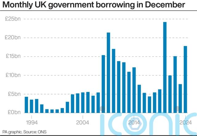 The Office for National Statistics (ONS) said public sector net borrowing stood at £17.8 billion in December – the highest level for four years.