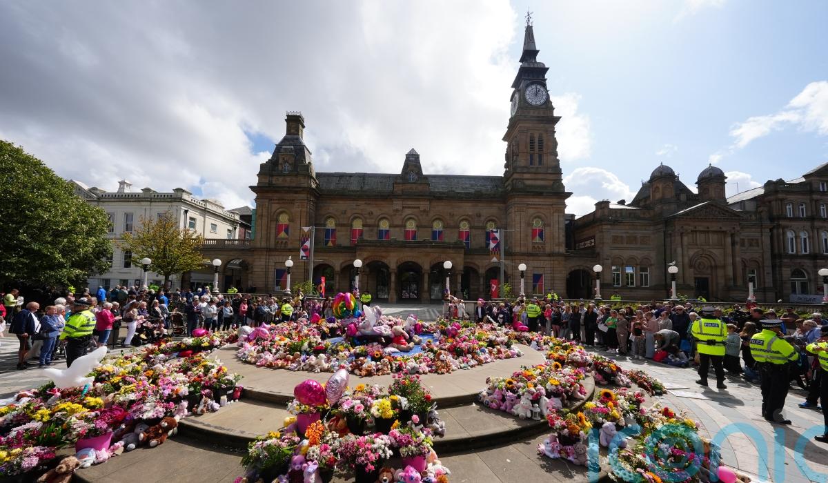 Separately, in the evening, a peaceful vigil is held outside Southport’s Atkinson arts venue, where flowers are laid in memory of those who died. Shortly after the vigil, a separate protest begins outside the town’s mosque in St Luke’s Road.