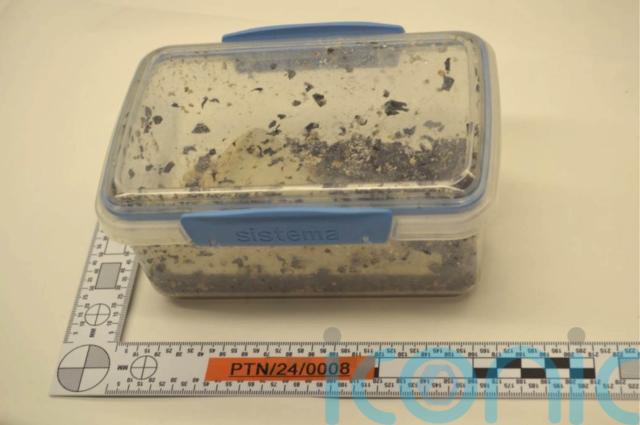 The poison is found in a sealed food container under his bed, where officers also find a pair of safety goggles, a lab beaker and a pestle and mortar.