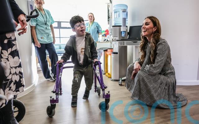 Kate crouched down to chat with the children with life-shortening conditions and their parents as she marked becoming a patron of Ty Hafan children’s hospice in South Wales by visiting the centre.