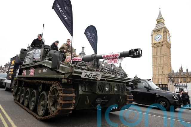 Drivers of vans covered with slogans including “every tool stolen is a job lost” and “hands off our van” tooted horns as they drove through Parliament Square.