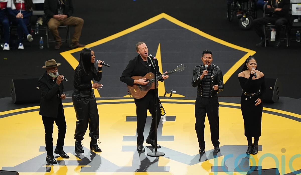 He then picked up his guitar to play and sing Coldplay’s hit Higher Power alongside four backing singers.