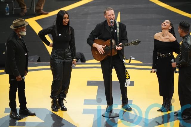 He then picked up his guitar to play and sing Coldplay’s hit Higher Power alongside four backing singers.