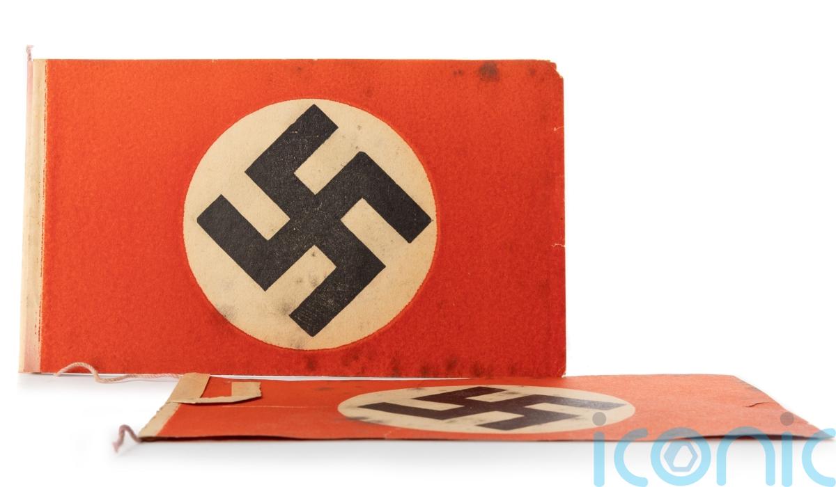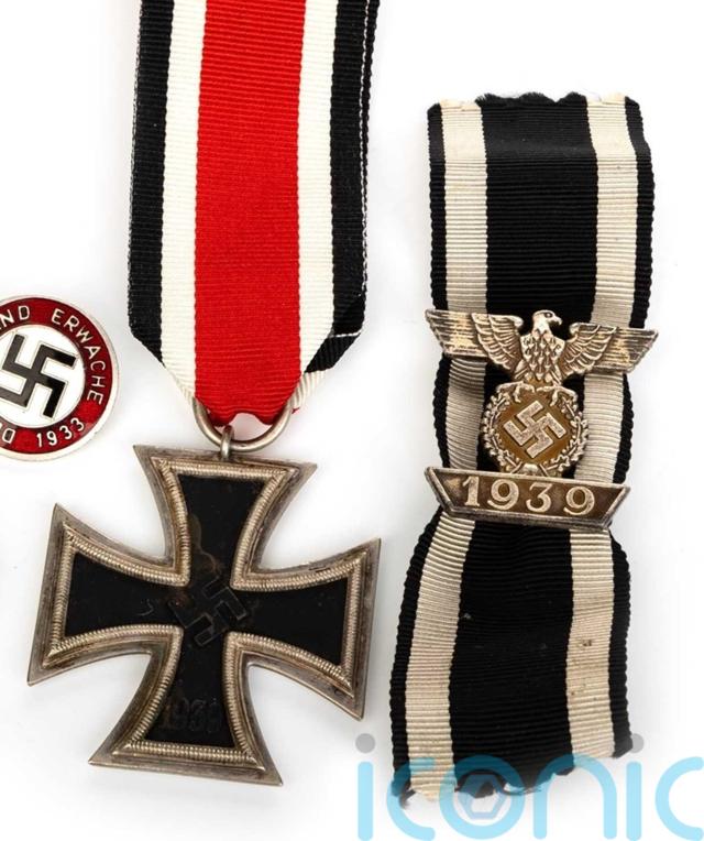 They included a 1939 Iron Cross medal and a 1933 badge featuring the swastika, which together sold for a hammer price of £300, and Nazi bunting, also emblazoned with the swastika, which sold for £50.