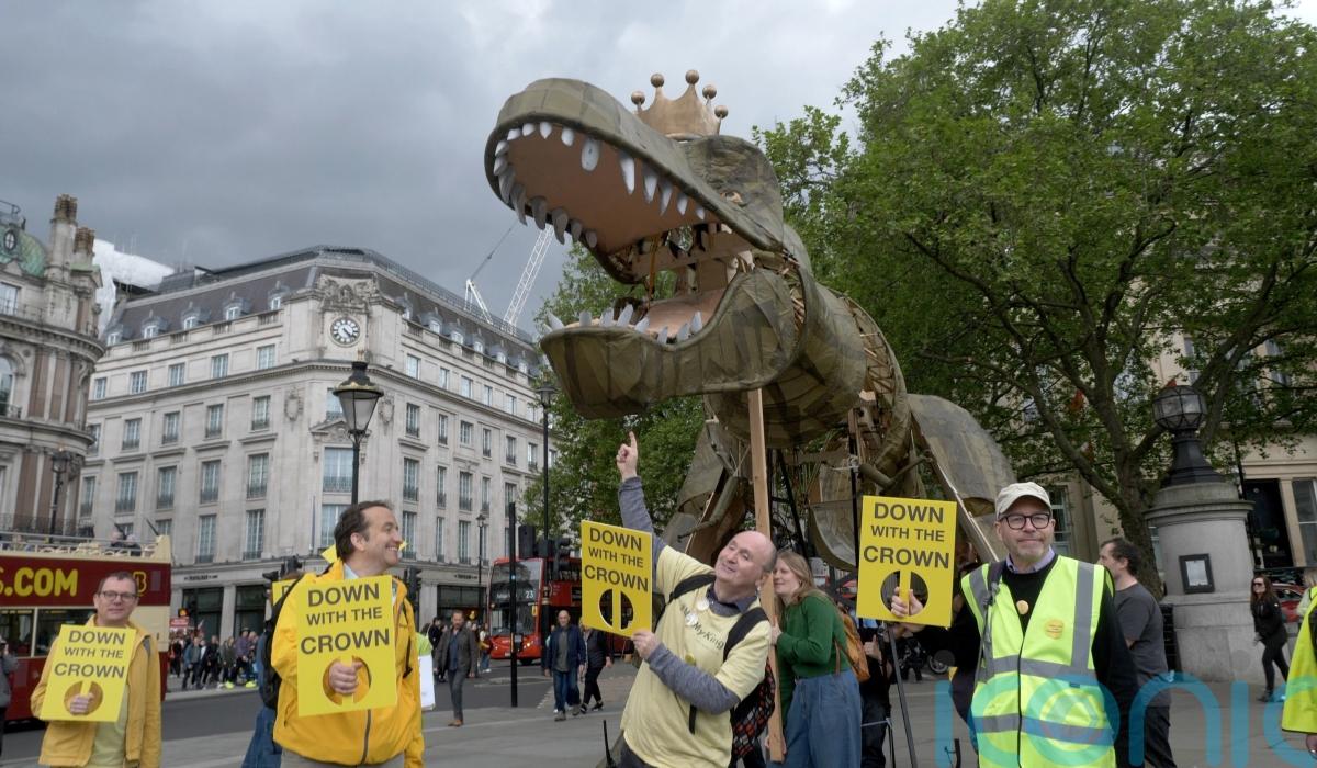 Republic’s prehistoric protest puppet is said to symbolise the “antiquated monarchy”, which the group describes as a “relic of a bygone age and a fossil that belongs in the museum”.