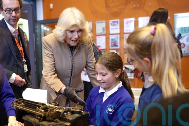 During her tour of the library and museum, Camilla chatted to children learning about changes in producing the written word, from typewriters to early computers, and others listening to a reading of Michael Morpurgo’s book There Once Is A Queen.