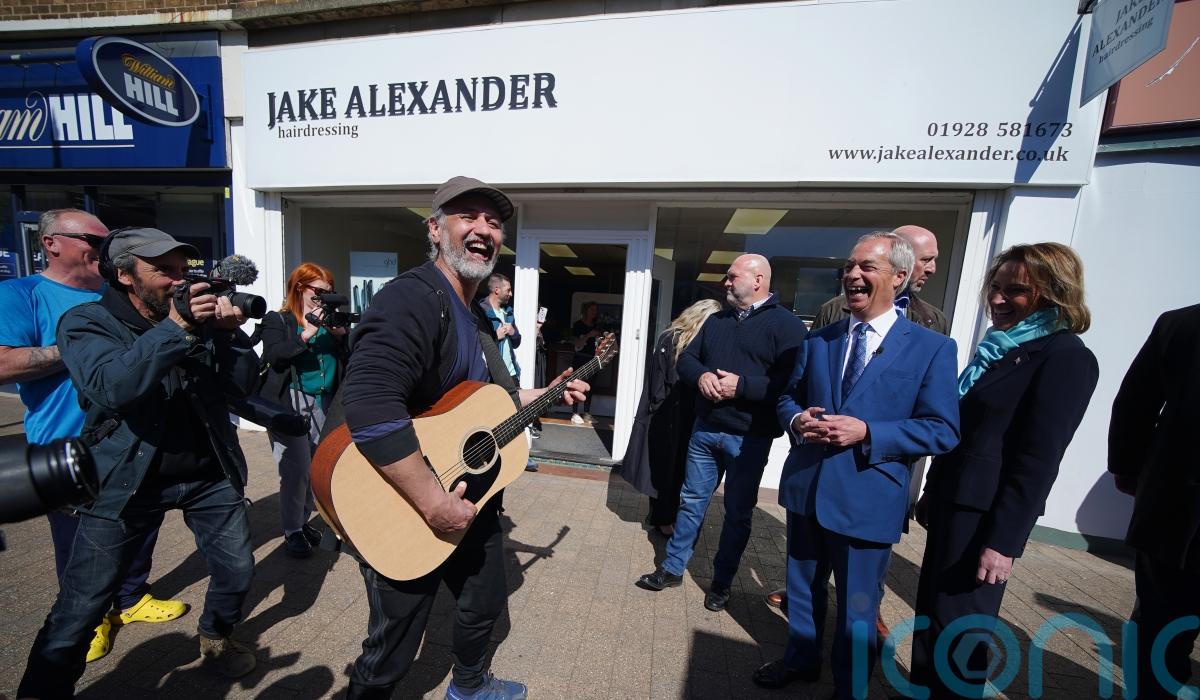 Reform UK leader Nigel Farage was serenaded by a potential voter as he visited Runcorn to campaign ahead of the by-election.