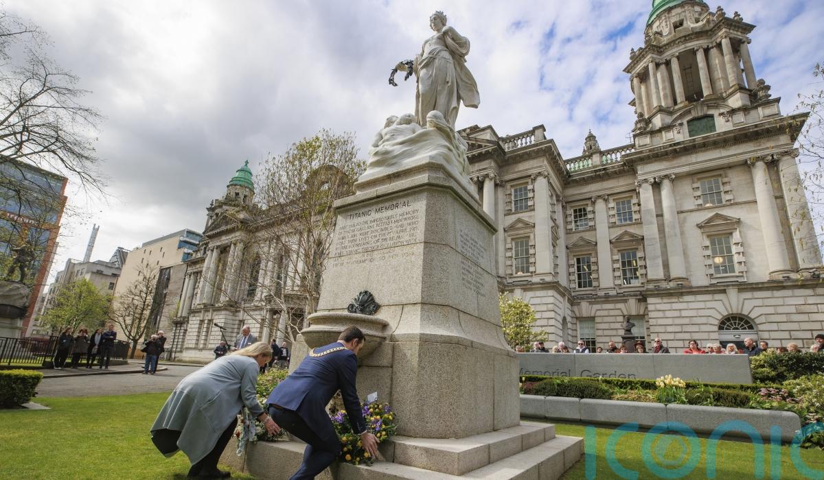Lord mayor Micky Murray led the service attended by members of Belfast Titanic Society for the tragic end of the ill-fated liner which was built in Northern Ireland’s capital last century.