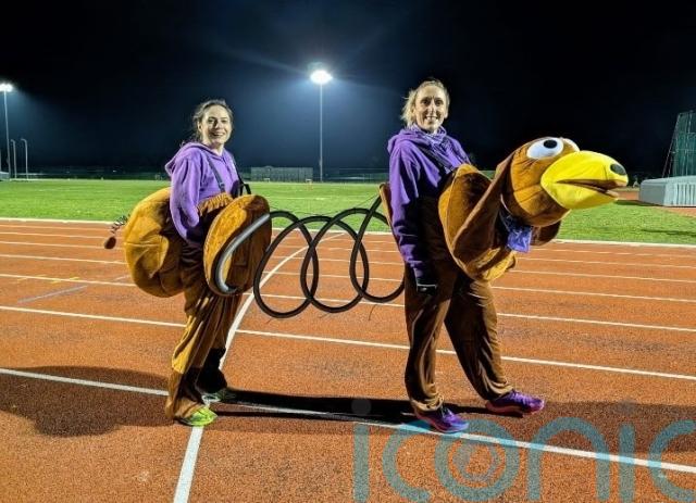 Dressed as a slinky dog, Chris Buckle, 47, and Emma Moreton, 44, hope to run the fastest marathon in a two-person costume (female), with a time to beat of four hours.