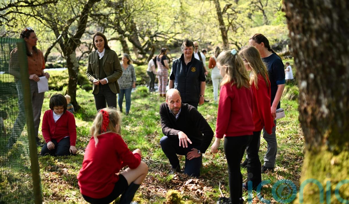 William and Kate came suitably dressed for a trip to Ardura Community Forest on the Isle of Mull and spent time with an early years outdoor learning play group and their parents.