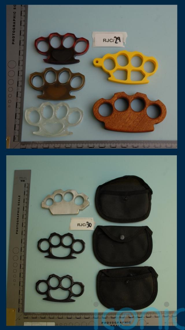 He also had collected, in boxes on an open shelf, metal and pointed missiles and darts, while arrows and a knuckle duster were also found in the property.