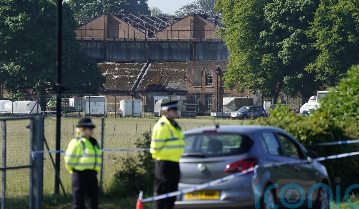Officers remained at the entrance of the former RAF base on Friday, and a fire engine and ambulance could be seen leaving the area while another police vehicle entered the site.