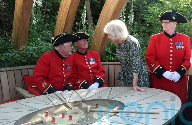 Camilla enjoyed her time in the London Square Chelsea Pensioners Garden which will be moved a short distance into an open space used by the former servicemen and women at the end of the four-day flower show.