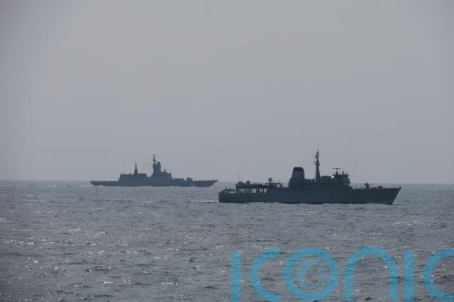 The warship subsequently escorted the two cargo ships eastbound, watched by HMS Hurworth, also based in Portsmouth.