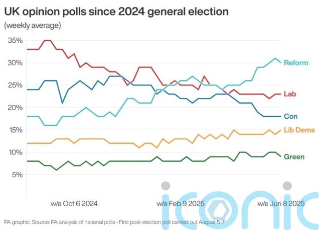 According to the latest figures from YouGov, Reform is polling at 29% when it comes to national voting intention, ahead of Labour on 23% and the Conservatives on 17%.
