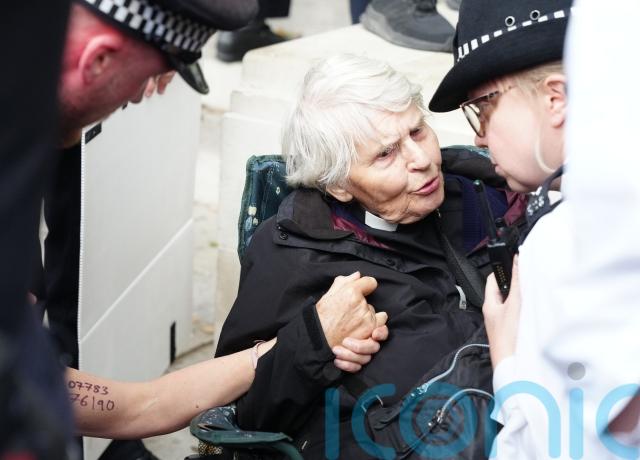 Reverend Sue Parfitt, 83, who was sat in a camp chair with placards at her feet, appeared to have been taken away by officers.