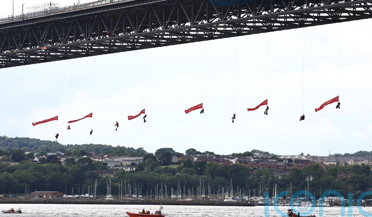 They have a support team on the bridge itself and on the water, with the group saying they plan to stay in place for 24 hours – using hammocks to make themselves comfortable if they need to.