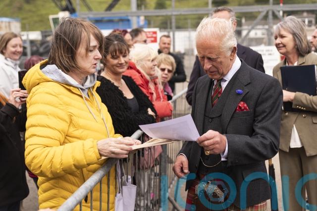 Wearing a kilt, the King met crew members of the Pacific Heron, a second-generation purpose-built nuclear transport vessel.