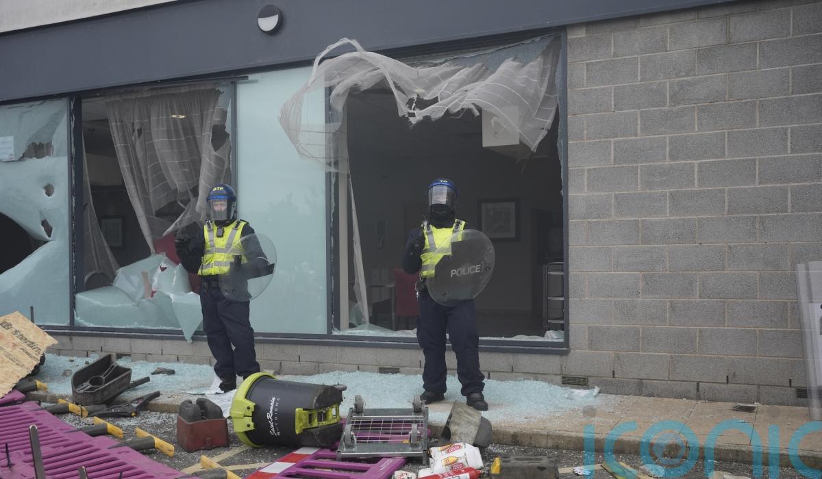 One is Thomas Birley, 27, of Swinton in South Yorkshire, who pleaded guilty to arson with intent to endanger life, violent disorder and possession of an offensive weapon, and was part of a group who pushed a burning bin against the hotel and stoked the fire.