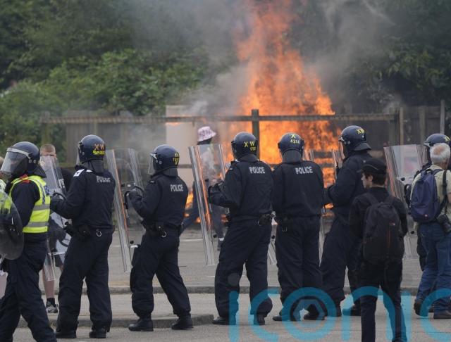 The second is Levi Fishlock, 31, of Barnsley in South Yorkshire, who pleaded guilty to violent disorder and arson with intent to endanger life, and who added planks of wood to the burning bin as well as building barricades that were set alight.