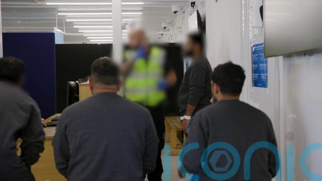 Video also showed men taken to Manston processing centre, wearing dark grey tracksuit jumpers and bottoms, being screened by Border Force officers.